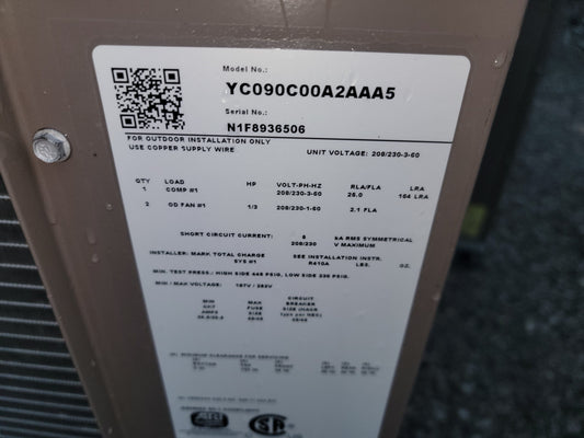 7.5 Ton Split System Air Conditioner, 460/60/3 R-410A 11.9 EER