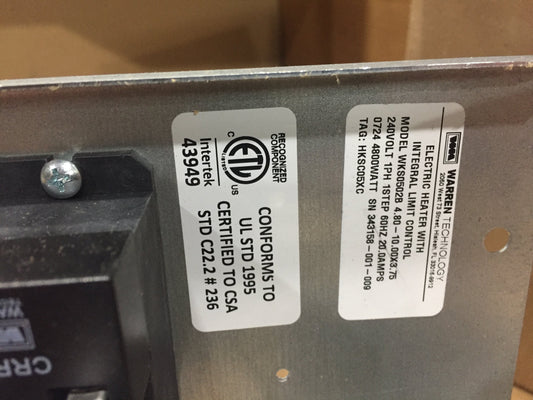 Vendor: goodman/warren4 Ton ECM Multi Air Handler R-410A CFM 1851 and 20 kW Electric Heat Kit w/Integral Limit Control