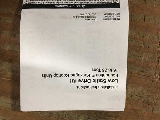 TRANE LOW STATIC DRIVE KIT, DEPTH/LENGTH : 20, FOR USE WITH TRANE EAC180A - EAC300A PACKAGED COOLING, GA180A - GA300A PACKAGED GAS/ELECTRIC, ALTERNATE