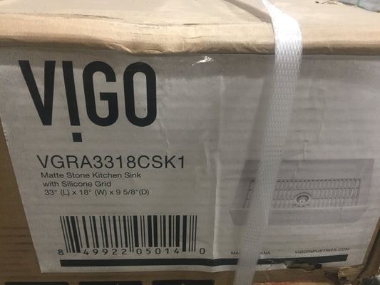 Vigo Matte Stone 33 Farmhouse Single Basin Undermount Kitchen Sink With Basin Rack