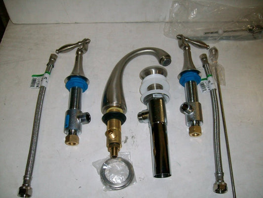 Lav Faucet Teapot Spout w/Pop Up Pearl Nickel Less Handles