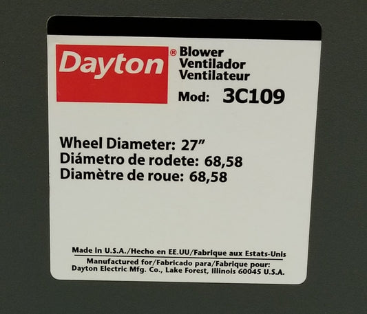 Blower Wheel and Housing Assembly 15"H x 9 1/4"W x 18 1/4"L