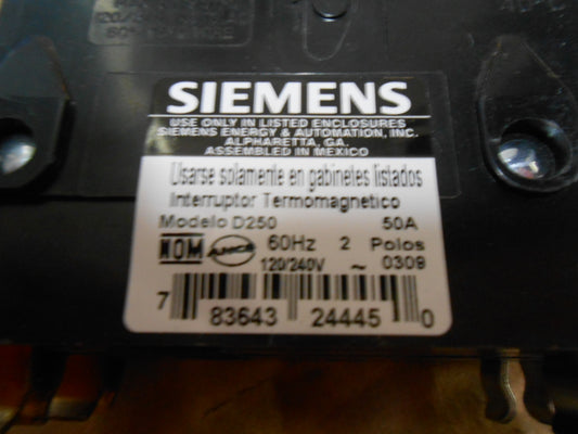 Sold outVendor: siemensBreaker 120/240 Volt 50 Amp 2-Poles