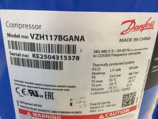 10 Ton AC/HP Inverter Scroll Compressor; 380-480V/50-60/3, R-410A 212117