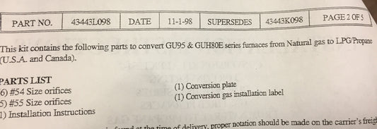 LP Conversion Kit for G8C,L8C & BG Series Auto Ignition Gas Furnaces