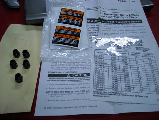 Conversion Kit From Naturl Gas to Propane Gas for Model PGN 2 to 5 Ton Units