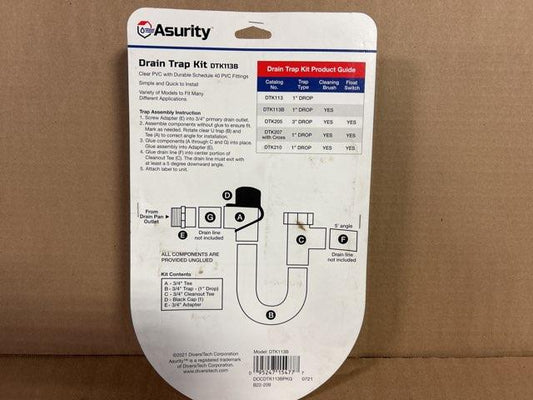 3/4" Drain Trap Kit, Clear U Trap With Cleaning Brush