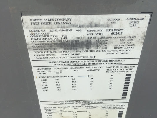Vendor: rheem8.5 Ton 2 Stage Convertible Natural Gas/Electric Packaged Unit, 11 Eer, 380/415/60/3, R410A