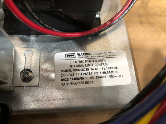 15 kW Electric Heat Kit w/Integral Limit Control; 240/60/1, 60 Amps