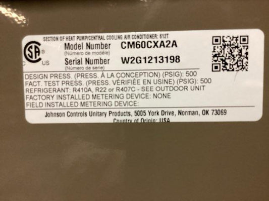 5 Ton AC/HP Upflow/Downflow Cased N Coil, R410A CFM 1800