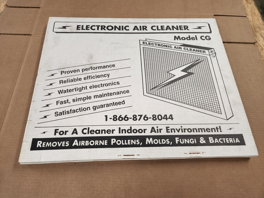 Polarized-Media Electronic Air Cleaner, 24Vac, 60 Hertz, 2 Watt, 20 x 20" x 1""