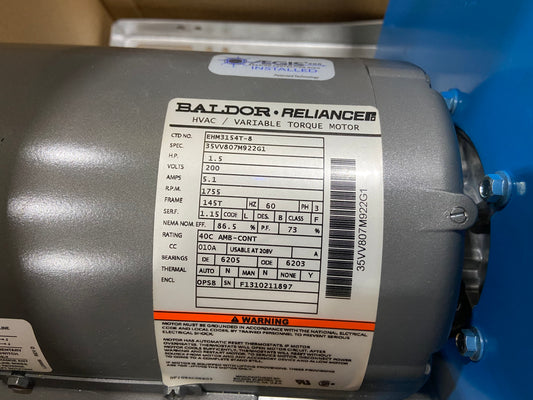 1.5 HP Fan Motor Assembly, 200/60/3 RPM:1755