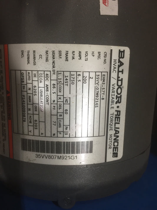 2 HP Fan Motor Assembly, 200/60/3 RPM:1750