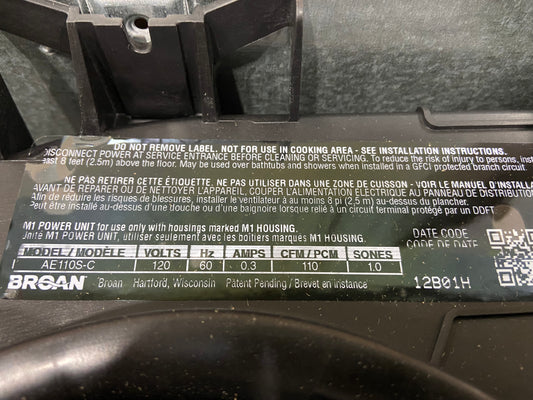 Humidity Sensing Ventilation Fan 110 CFM 120/60/1