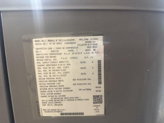 Vendor: goodman/trane1.5 Ton 1-Stg SS Heat Pump 14.3 SEER2 with 1.5 Ton Multiposition Fan Coil with 8kW Electric Heat Kit