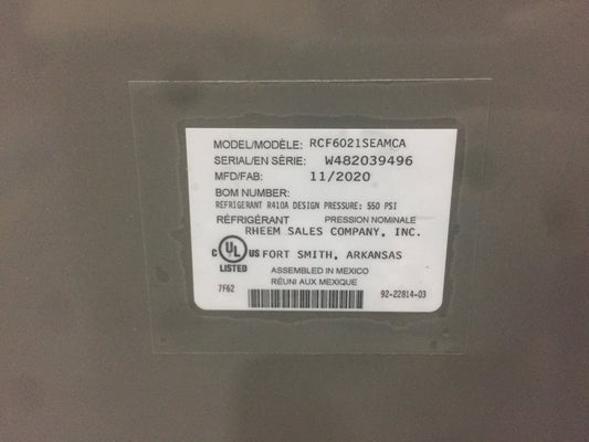 Vendor: frigidaire/rheem100,000 BTU Ultra Low NOx Up/Horz Gas Furnace 80%, 5 Ton SS Comm Comp AC 16 SEER, 5 Ton Multi A Coil