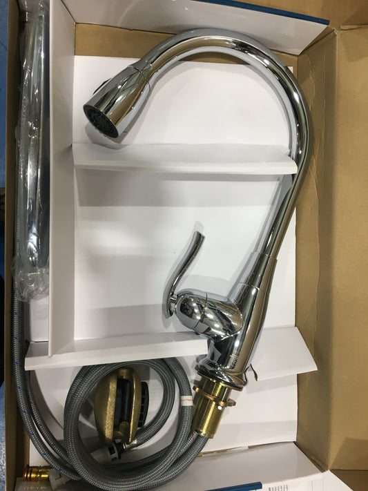 Faywood Single Handle Pull Down Kitchen Faucet, Polished Chrome