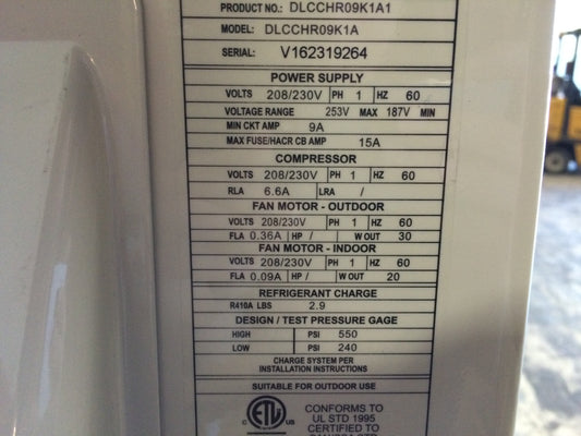 12,000 Btu Outdoor Mini-Split AC Unit 115/60/1 R-410A
