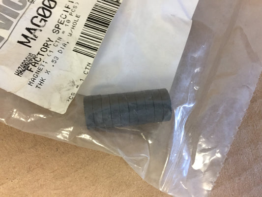 Cover Magnet, HH, 0.12" Thick X 0.53" Dia, w/Hole (Pack of 10)