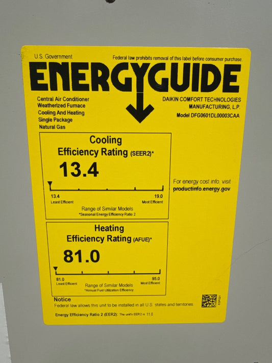 5 Ton Single-Stage Convertible Natural Gas/Electric Packaged Unit, 13.4 SEER2, 208-230/60/1, R410A