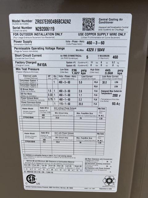 8.5 Ton 2-Stg Convertible Packaged Air Conditioning Unit W/ 9 KW Heat, 12.2 EER, 460/60/3, R410A