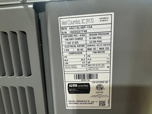 4 Ton Split-System Air Conditioner; 13 SEER, 208-230/60/1 R-410A
