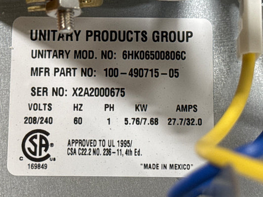 7.5 Ton AC/HP ECM Upflow/Horizontal Air Handler 203/280/460/60/3 R-410A CFM 3750