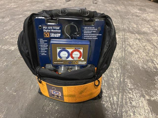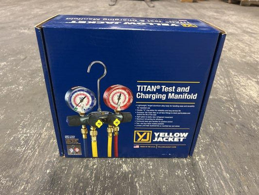 Titan Manifold Four Valves with 3/8" F Gauges and 60" Plus II Hose Set, R-410A/R22/R404A