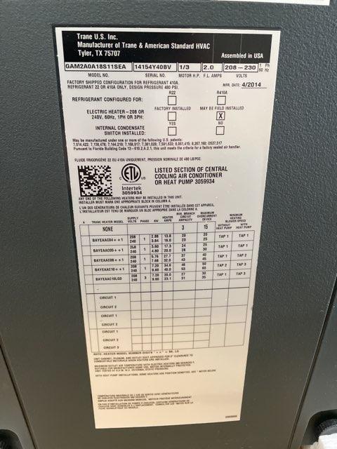 Vendor: trane2 Ton Ultra Low NOx Single-Stage Convertible Natural G/E Packaged Unit, 14 SEER, 208-230/60/1, R410A