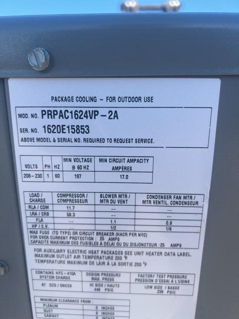 2 Ton Convertible Packaged Air Conditioning Unit, 16 SEER, 208-230/60/1, R410A