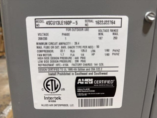 5 Ton Split-System Air Conditioner 208-230/60/1 R-410A 16 SEER
