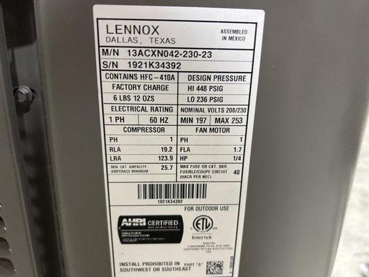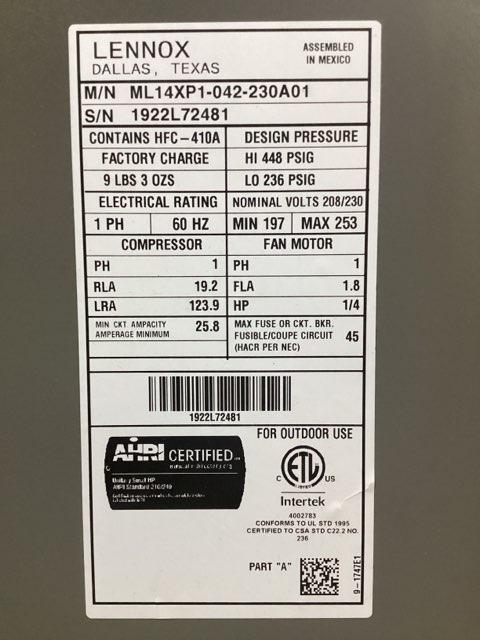 Vendor: lennox3.5 Ton Single Stage Split-System Comm Compatible Air Conditioner 208-230/60/1 R410A 18 SEER