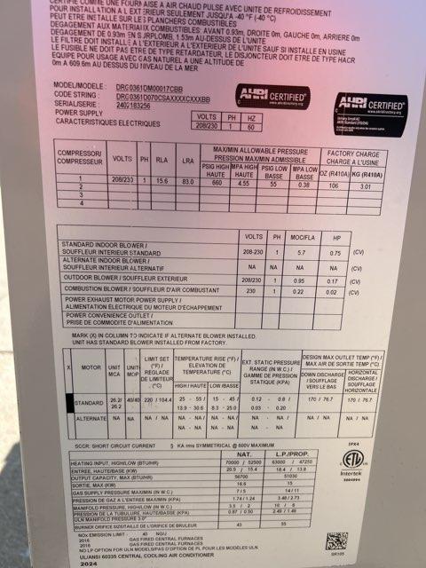 Vendor: daikin3 Ton Low NOx 1-Stg Convertible Natural Gas/Electric Packaged Unit, 13.4 SEER2, 208-230/60/1, R410A