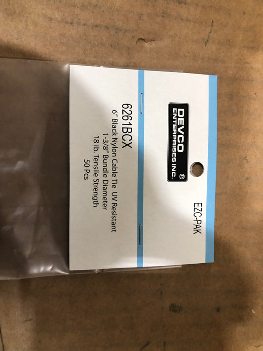 6" Black Nylon Cable Tie UV Resistant 50 Pack