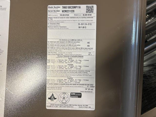 100000 BTU TWO-STAGE MULTIPOSITION ECM VARIABLE SPEED GAS FURNACE 80% AFUE // CFM: 1600