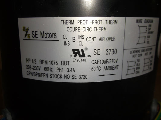 1/2HP CONDENSER FAN MOTOR 208-230/60/1 RPM 1075/1-SPEED
