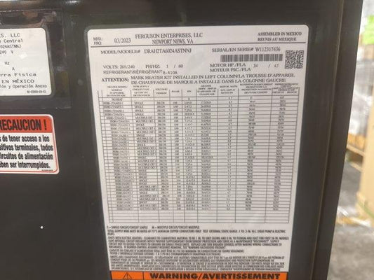 Proveedor: friedrich/durastar/warren5 Ton 2-Stg SS HP R-410A 15.2 SEER2 and 5 Ton Multiposition Air Handler and 7.2 KW Heat with Breaker