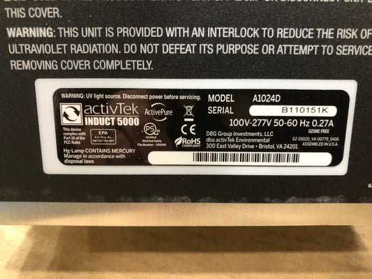 Sistema de purificación de aire Induct 10000" Induct UV 120-277 V 50/60 Hz 0,54 A (libre de ozono)