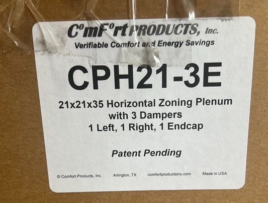 Plenum de chapa metálica de 2 zonas ComfortPLENUM CPH21-3E con compuertas de zona y compuerta de derivación incorporada
