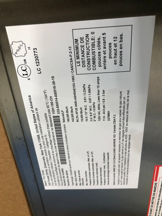 Caldera de agua caliente a gas de 150 000 BTU de acero inoxidable de montaje en pared de alta eficiencia, ventilación dirigida, 95,2 % 120/60/1