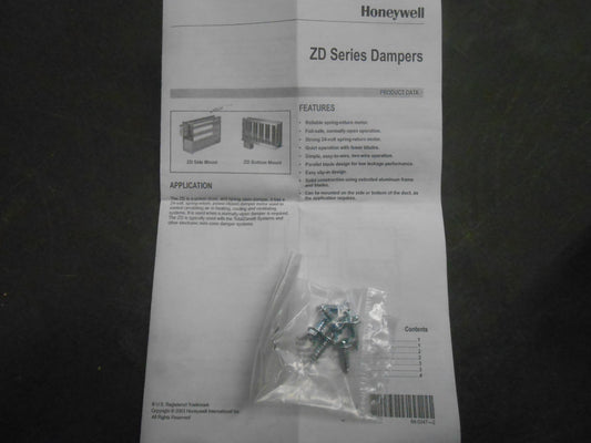 Proveedor: honeywellSerie Zd, Amortiguador de zona de cuchillas paralelas de aluminio extruido, Voltios: 24, Hertz: 60