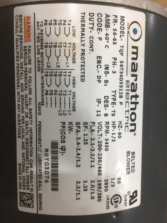 Motor soplador de 1/3-1/2 HP, 200-230/460/60/3-190/380/50/3, 2850-3450 RPM, 1 velocidad
