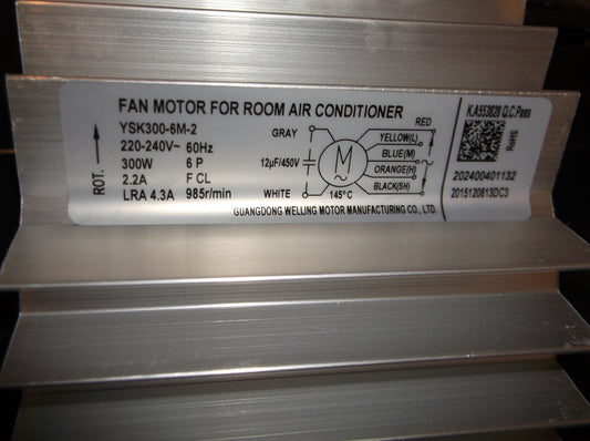 Motor de ventilador de 300 vatios para aire acondicionado de habitación 220-240/60/1 RPM: 985