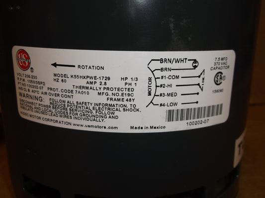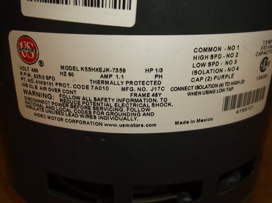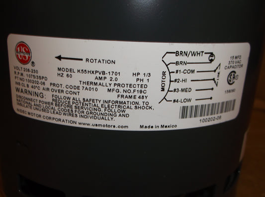 Motor de ventilador de condensador de 1/3 HP 208-230/60/1 RPM: 825/1 velocidad
