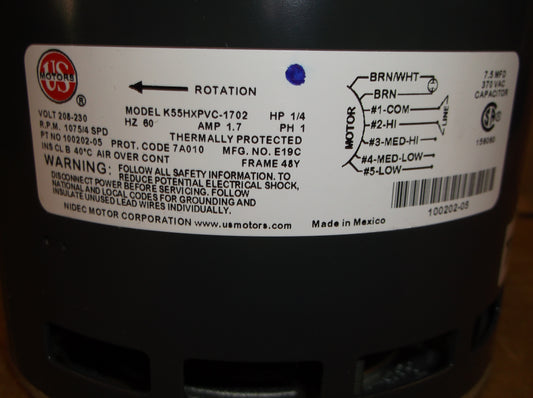 Motor de soplador de accionamiento directo de 1/4 HP, 208-230/60/1 RPM: 1075/4 velocidades