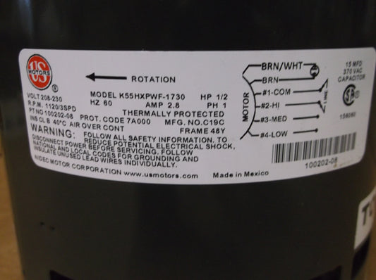 Motor de soplador de accionamiento directo de 1/2 HP, 208-230/60/1 RPM: 1120/3 velocidades