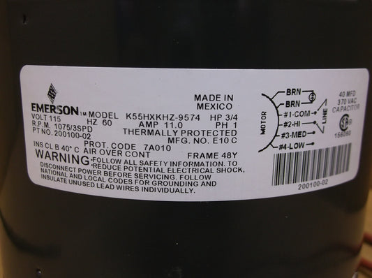 Motor de soplador de accionamiento directo de 3/4 HP, 115/60/1 RPM: 1075/3 velocidades
