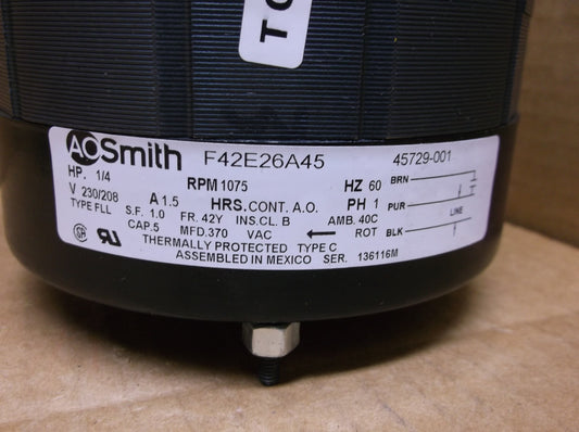 Motor de soplador de horno de 1/4 HP 208-230/60/1 RPM: 1075/1 velocidad
