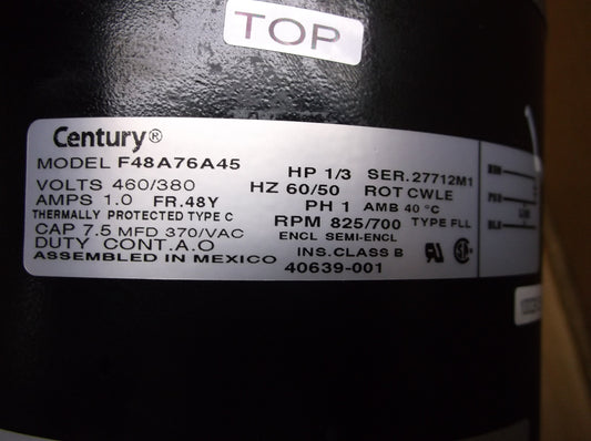 Motor de ventilador de condensador de 1/3 HP, 460-380/60-50/1 RPM: 825/1 velocidad