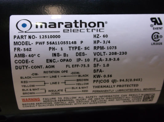 Proveedor: marathonMotor de ventilador con correa de 3/4 HP, arranque por capacitor, 208-230/60/1 RPM: 1075/1 velocidad